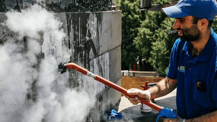 Czyszczenie parą pozwala bezpiecznie usuwać osady, naloty i zabrudzenia z kamienia, betonu oraz metalu, bez ryzyka uszkodzenia powierzchni i bez agresywnej chemii.